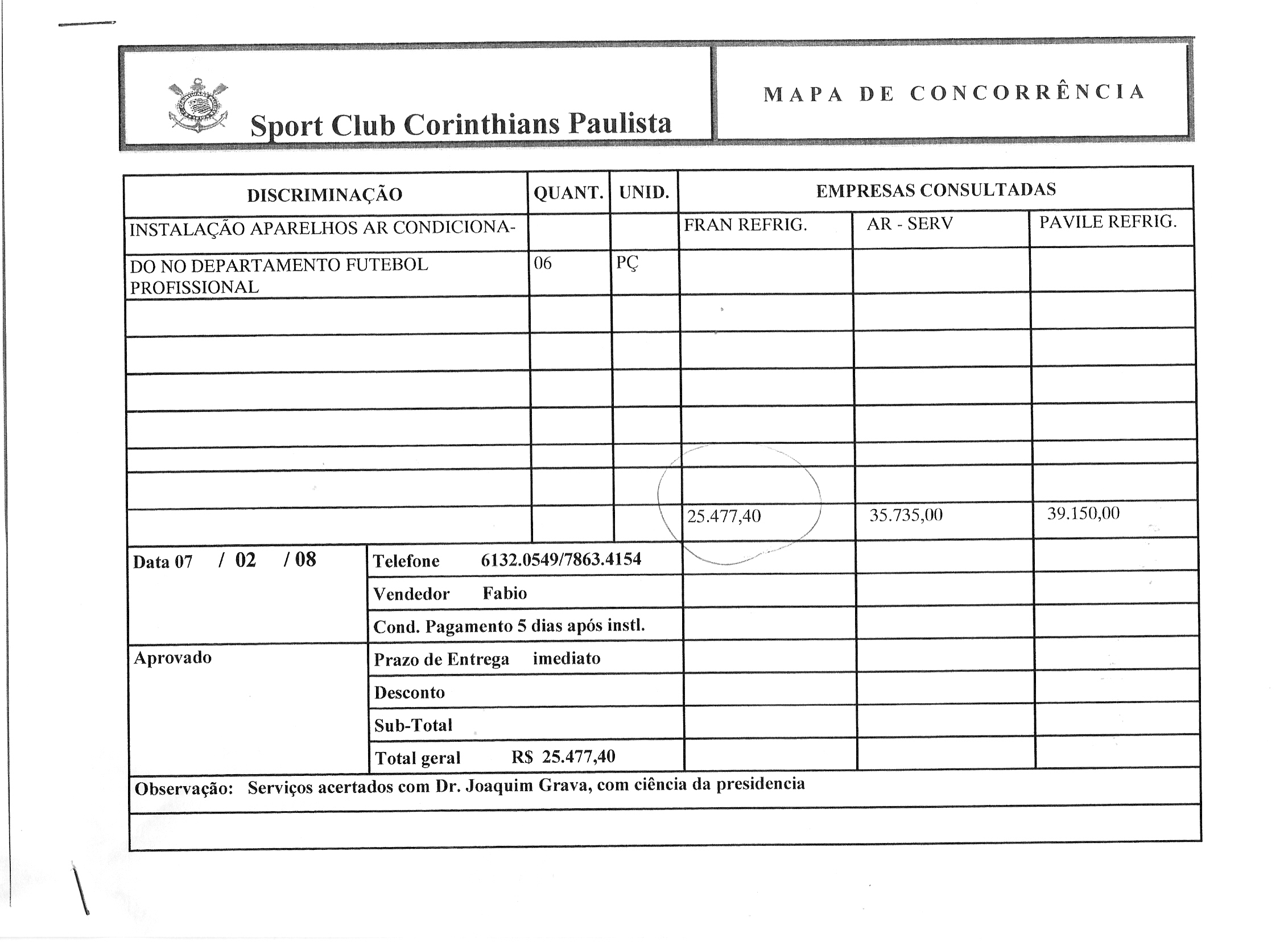 Você vai notar, no primeiro documento, na ultima linha a seguinte frase “Serviços acertados com Dr. Joaquim Grava, com ciência da Presidência”, o que significa que alem de Grava e André Martins, o presidente do clube, Andres Sanchez, também sabia do ocorrido.