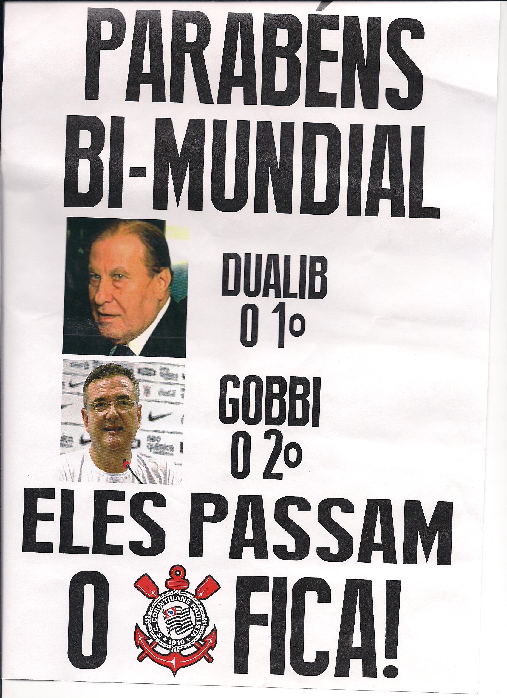 Na segunda, a lembrança de que o primeiro título veio através do trabalho do ex-presidente Alberto Dualib (que Ciborg ajudou a derrubar), citando ainda o atual, Mario Gobbi, e lembrando que os presidentes passam, mas o Corinthians é eterno.